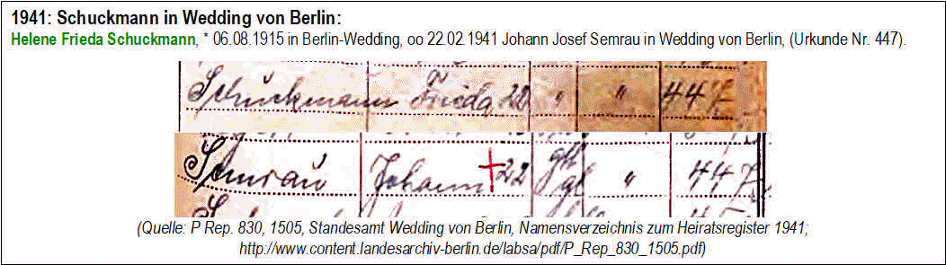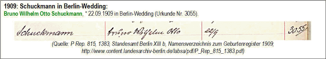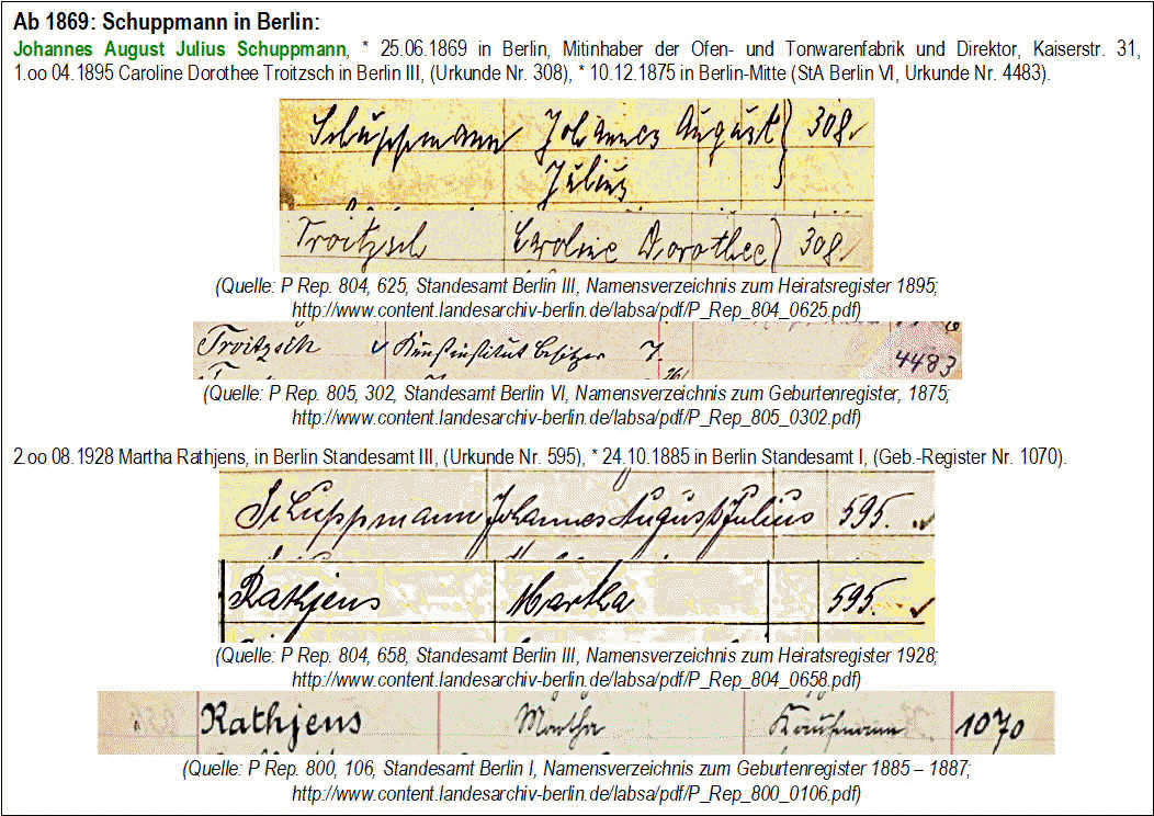 Ab 1863: Schuppmann/Schuckmann/Schubmann in den Namensverzeichnissen der Standesämter in Berlin: (Siehe zu den einzelnen Namen auch die Genealogie im Stammbaum Klaus Schuppmann oben)