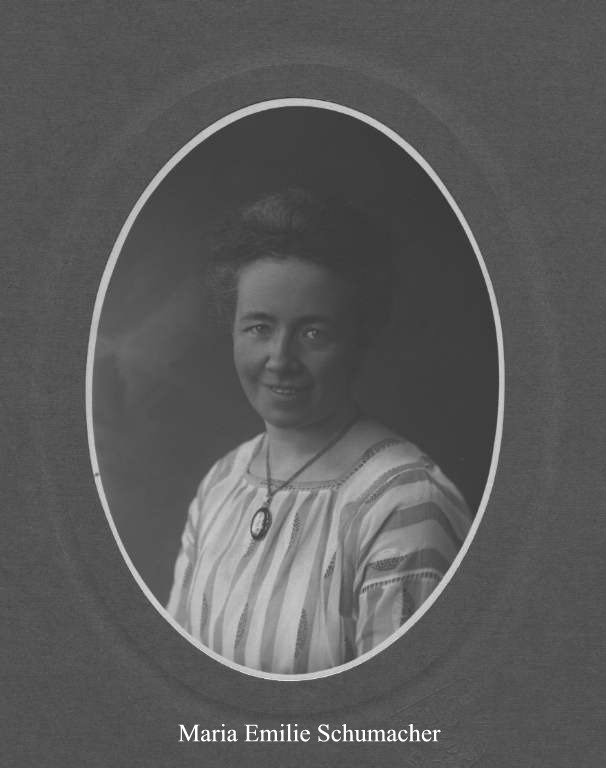 Schumacher, Maria Emilie * Elberfeld 19.09.1879, + 1947 Vater:Johannes Schumacher Mutter:Maria Bröcking Geschwister:Peter Friedrich Erstellt mit dem Programm AHNENBLATT (www.ahnenblatt.de).