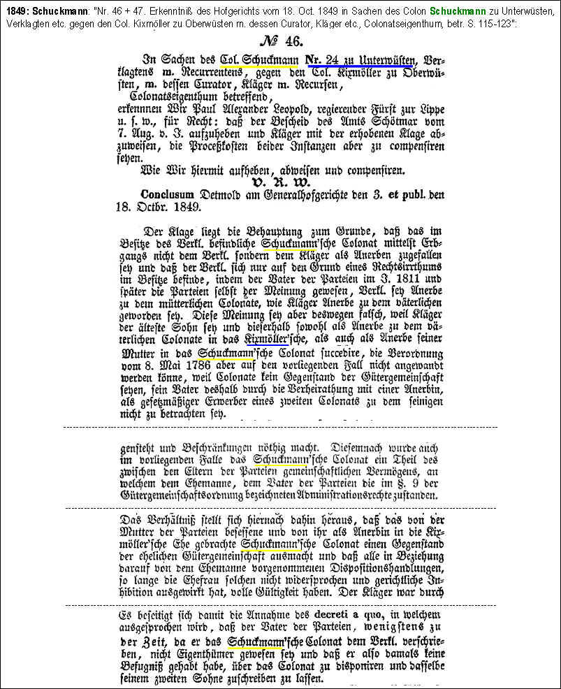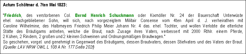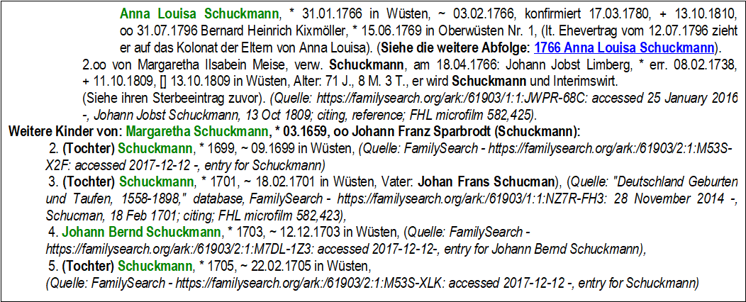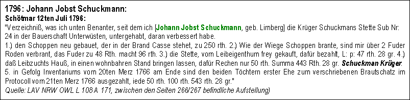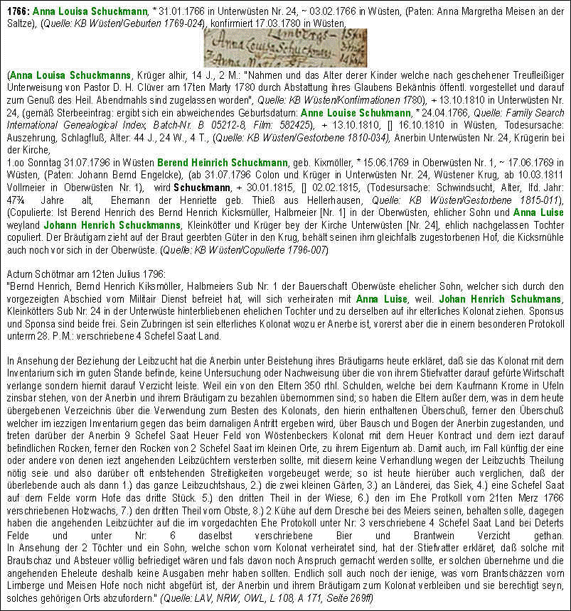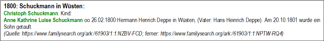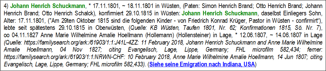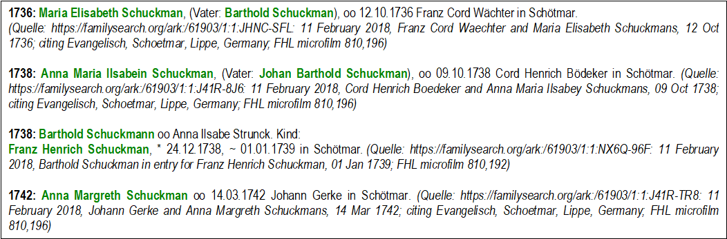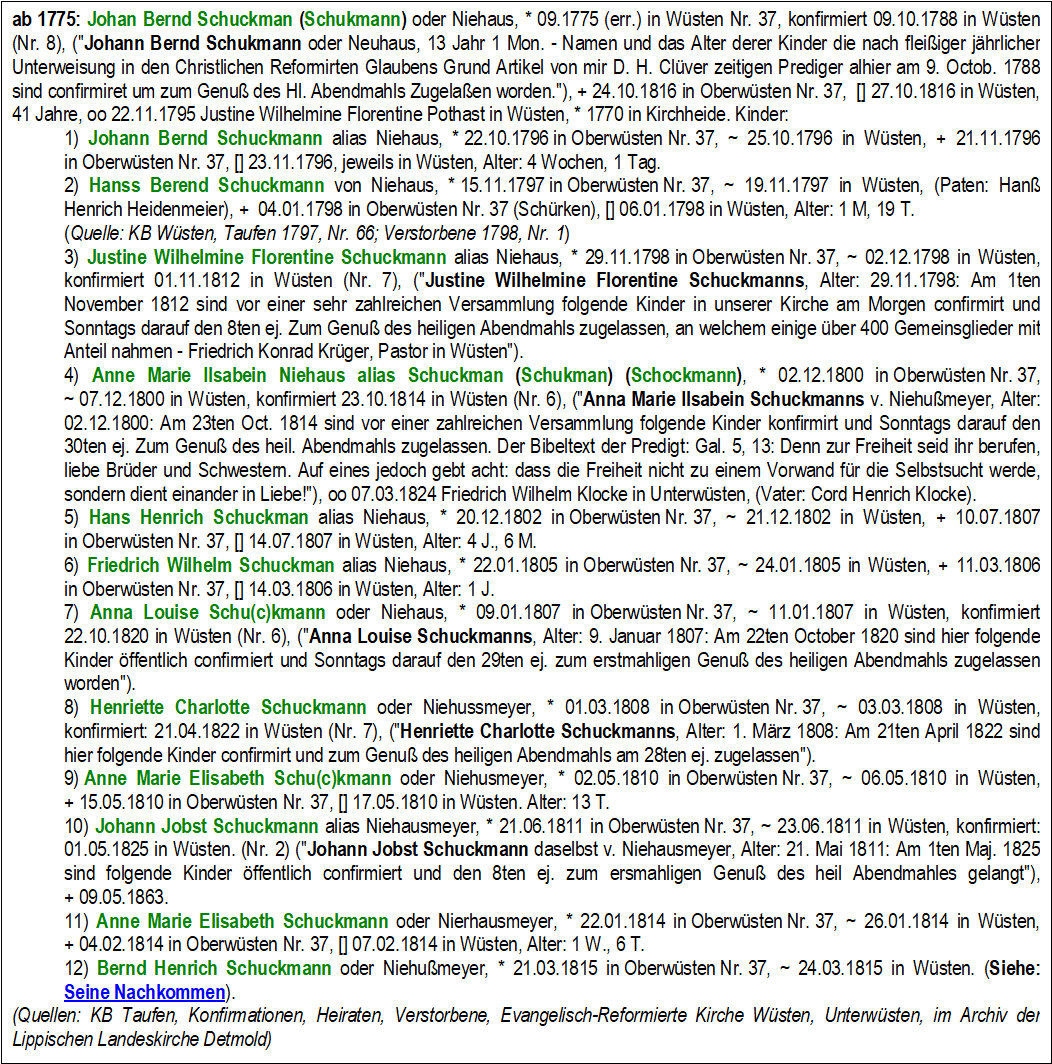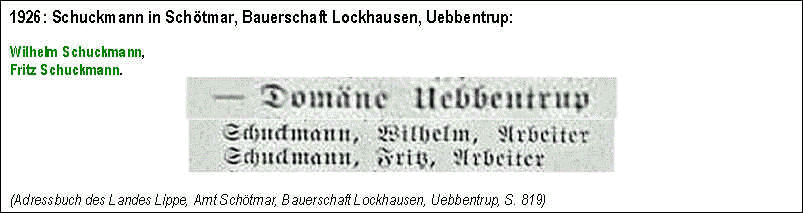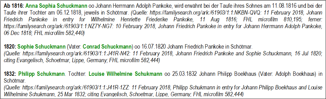 Ab 1763: Namensaufkommen Schuckmann in Wülfer, Lippe, n. Leopoldshöhe: