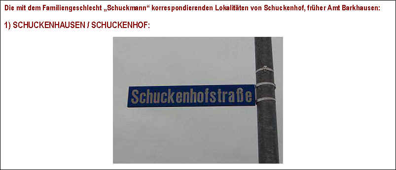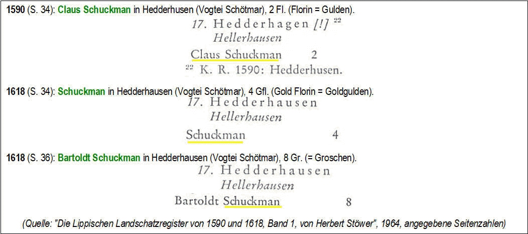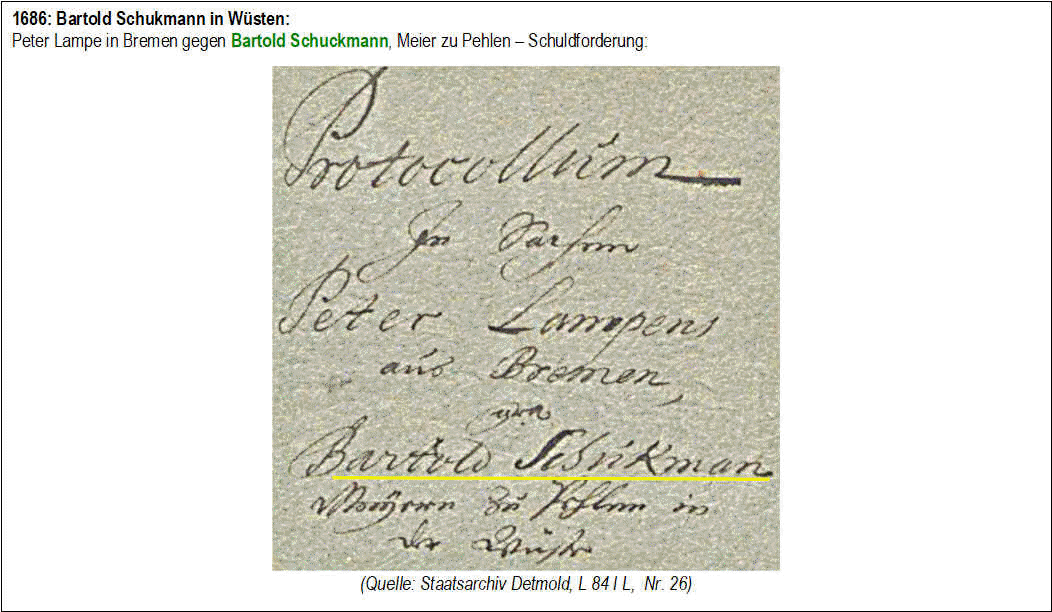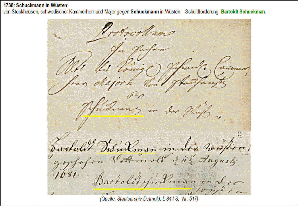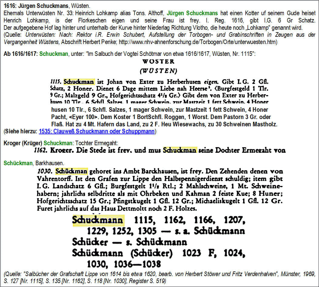 1681: Namensaufkommen Schuckman in Müssen, bei Lage/Lippe, sö. Leopoldshöhe: