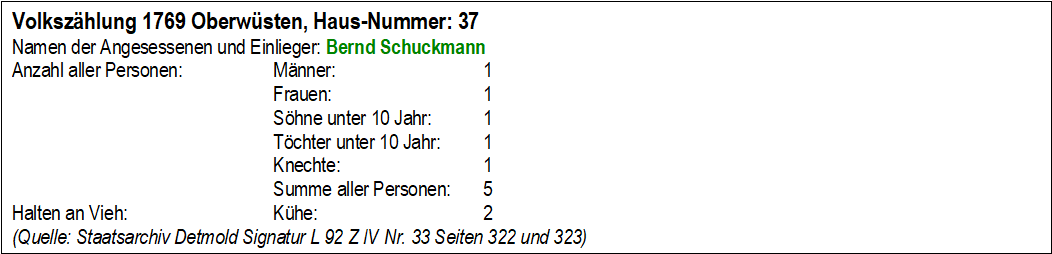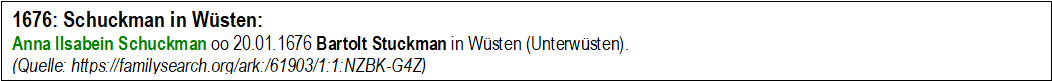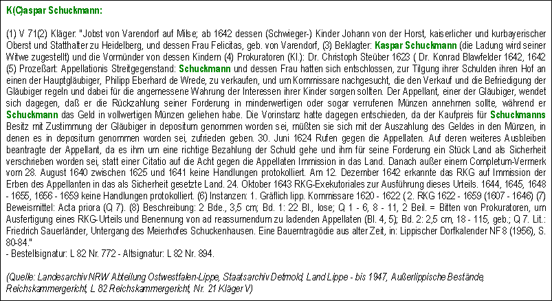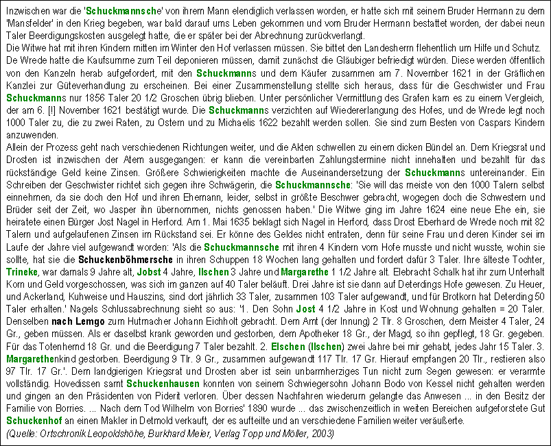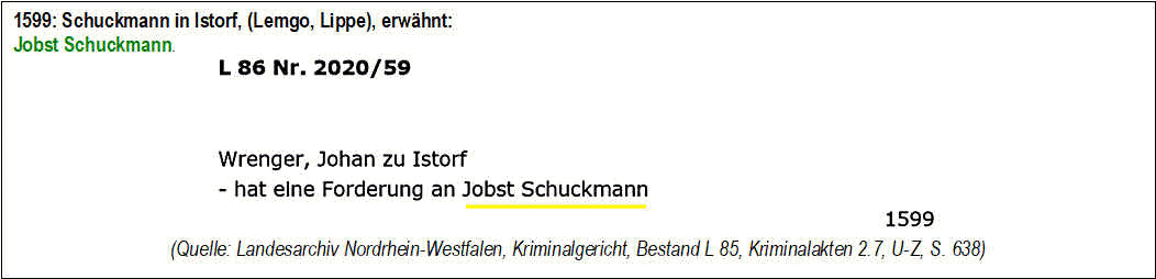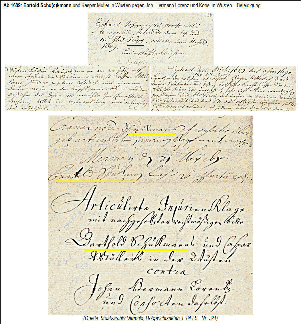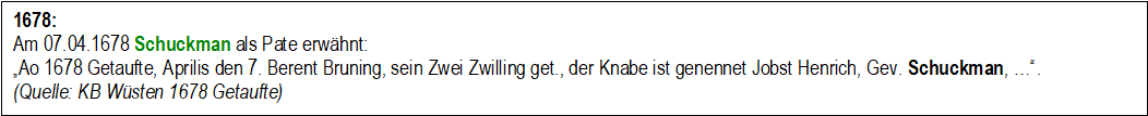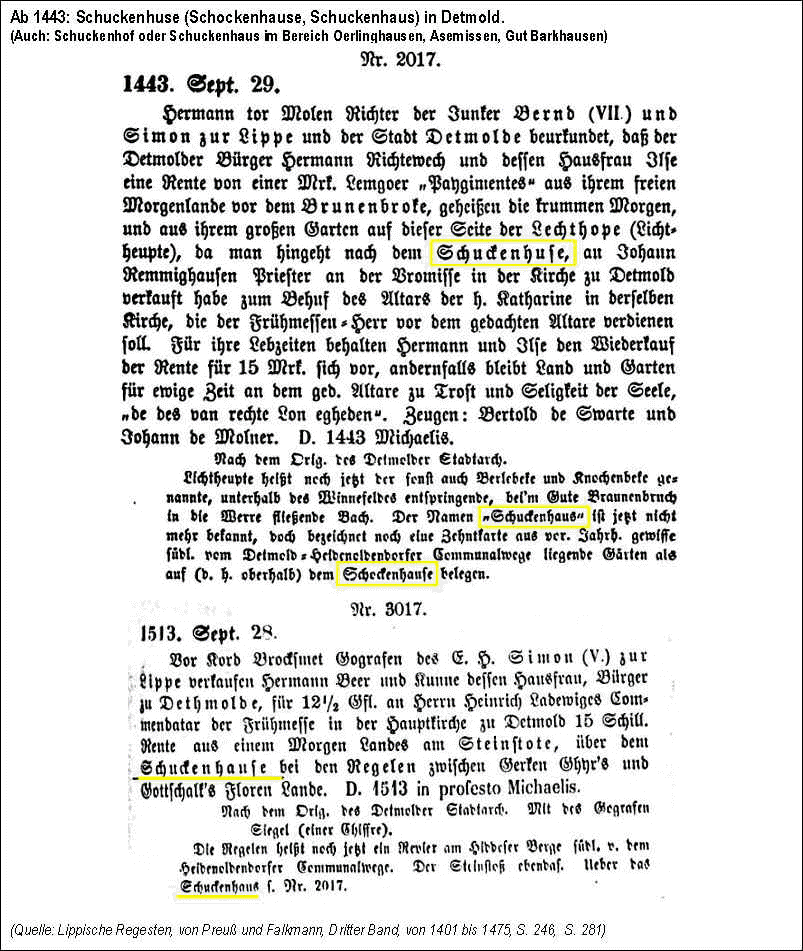 1681: Namensaufkommen Schuckman in Müssen, bei Lage/Lippe, sö. Leopoldshöhe: