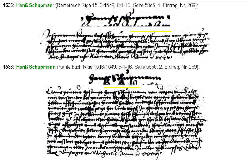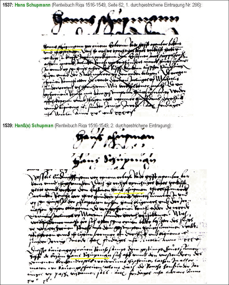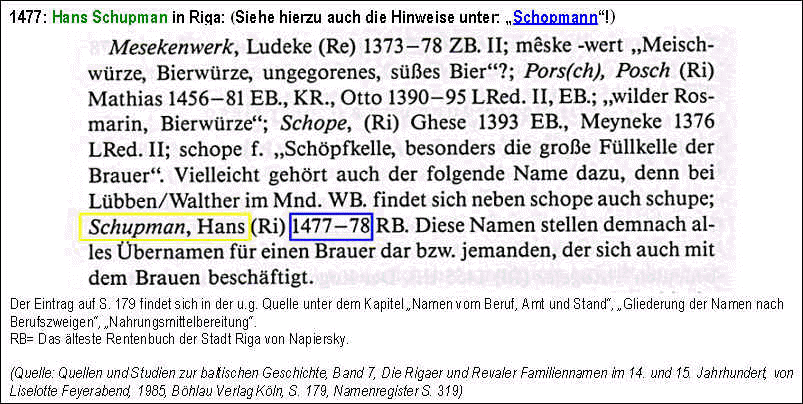 Ab 1476: Namensvorkommen Schupman/Schuppmann/Sc(h)opman/Scha(o)(c)kman in Riga:
