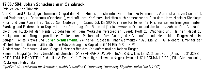 Ab 1511: Namensaufkommen Schuckmann in Wersen (w. Osnabrück):