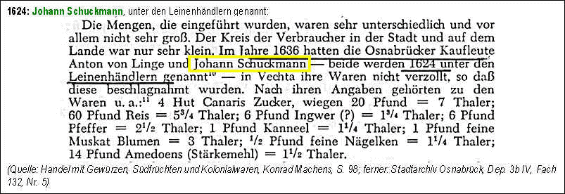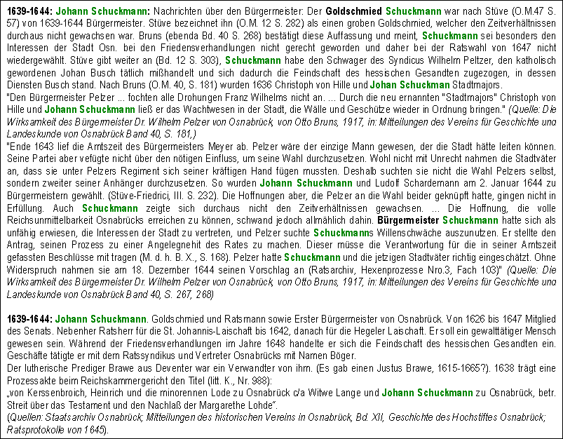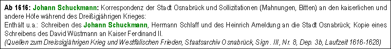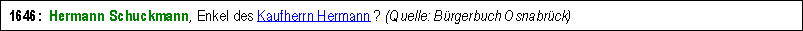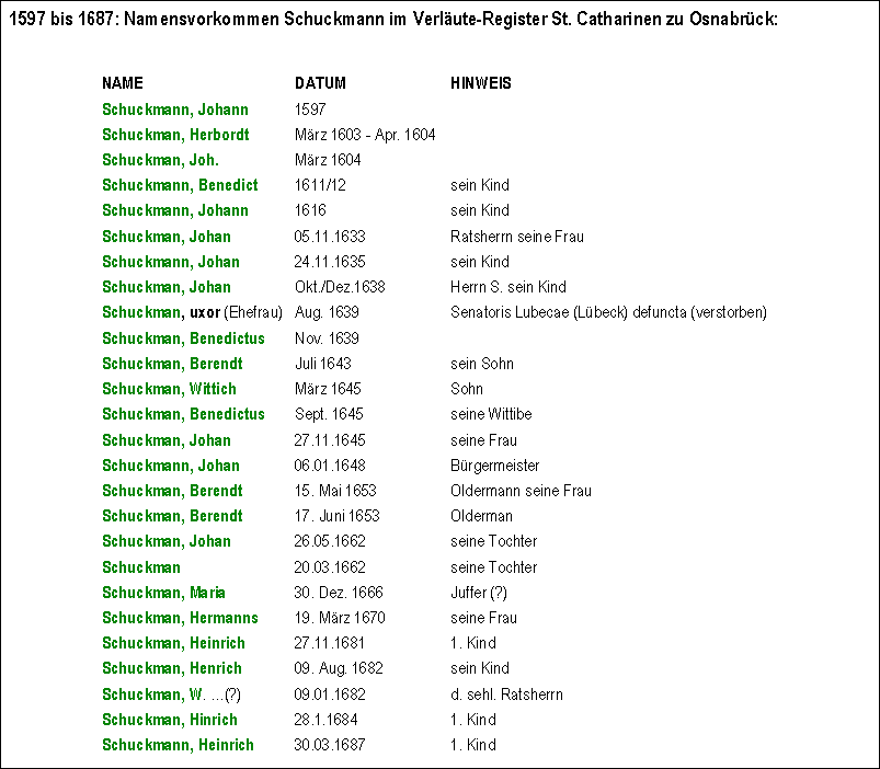 Ab 1378 bis 1688: Namensaufkommen Scuckeman (Schuckmann) in Osnabrück: