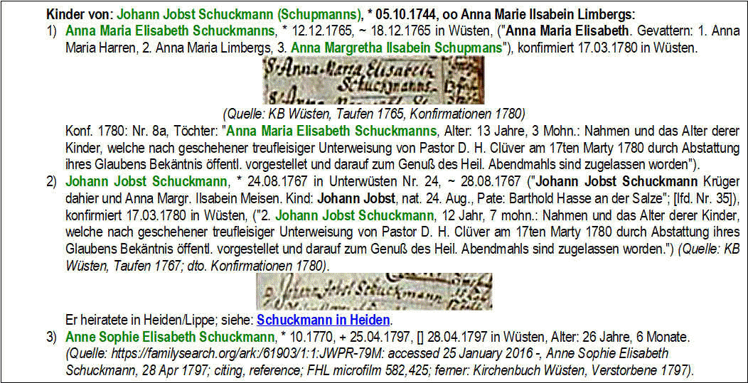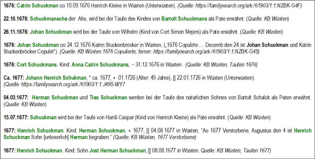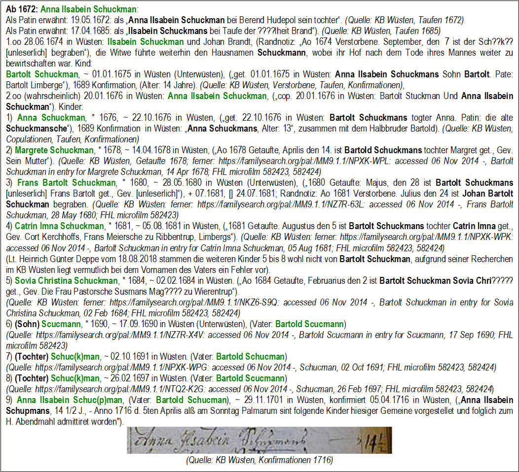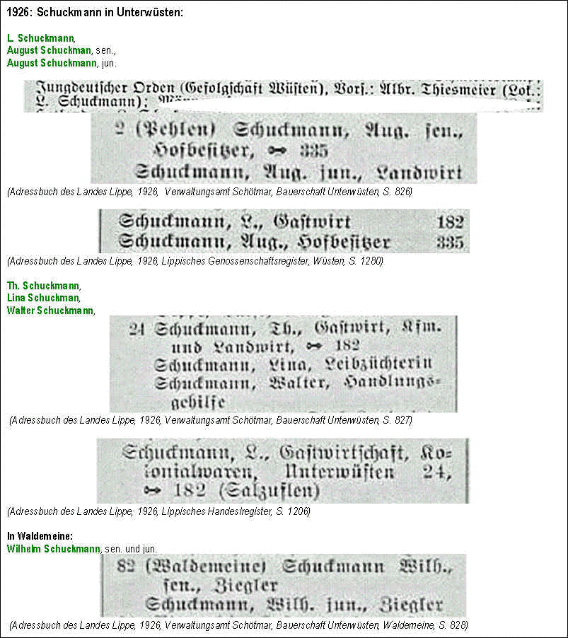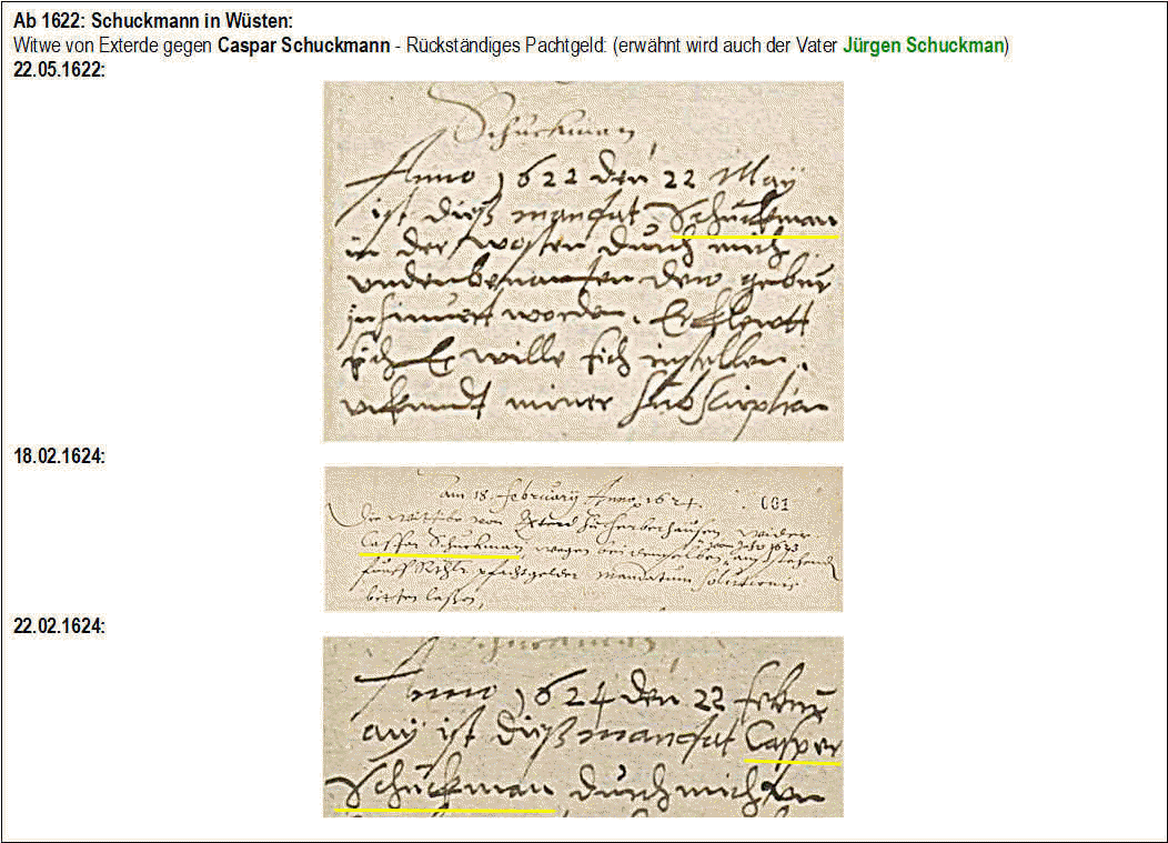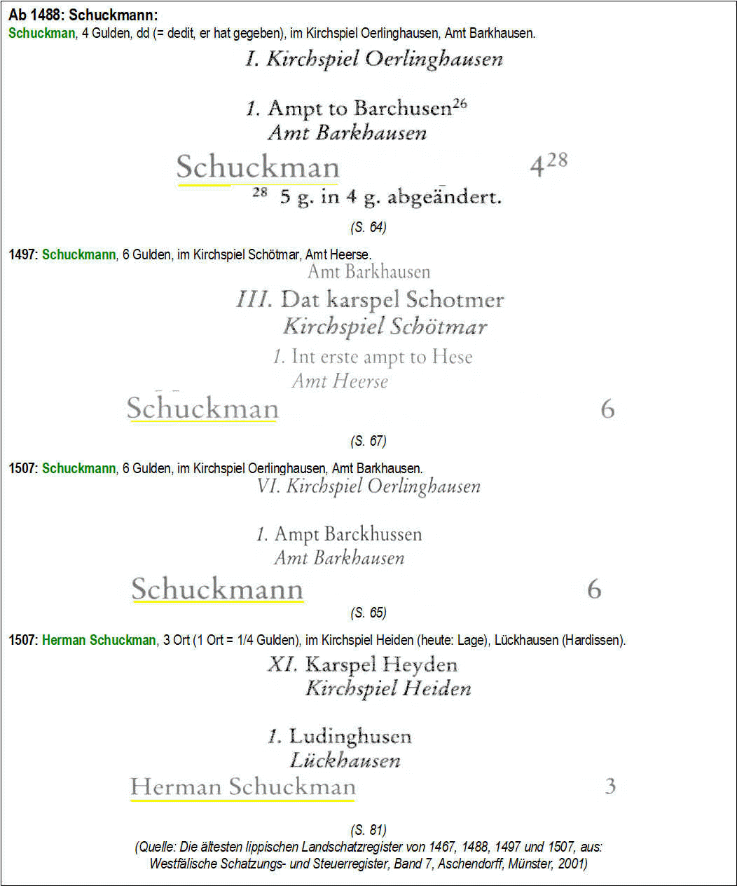 Ab 1398: Namensaufkommen Schuckmann/Schockmann/Schuppmann in Wüsten und Schötmar:
