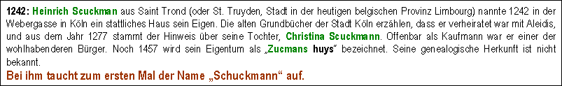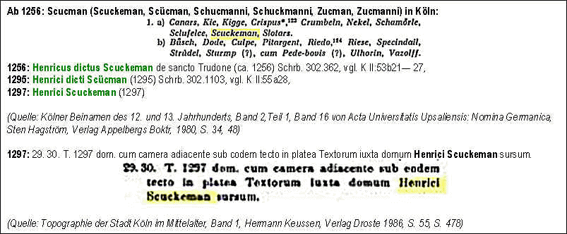 definitiv nachweisbar ist: Ab 1242: Namensaufkommen Scuckman in Köln: