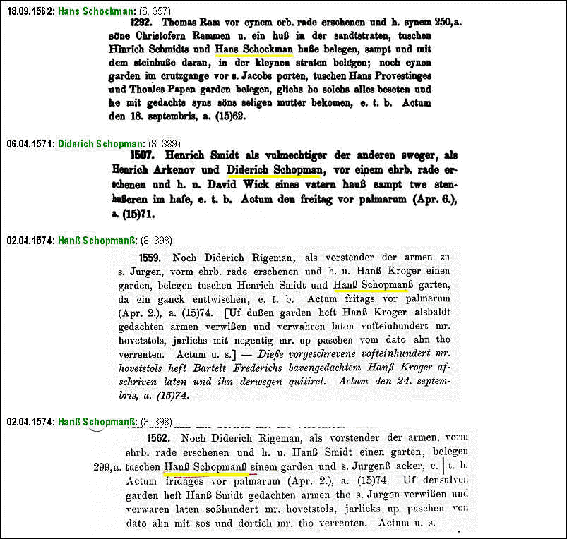 Ab 1451: Namensvorkommen Schuckeman (Schockman) in Bremen: