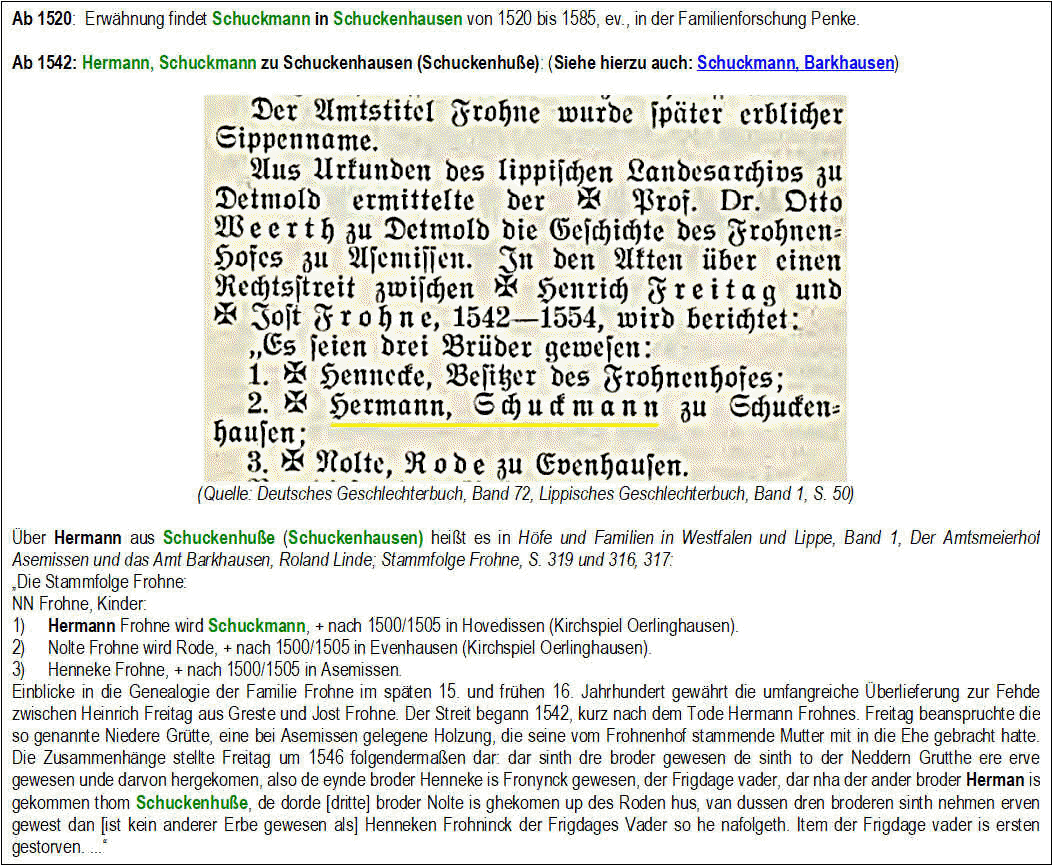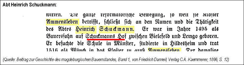 Um 1500: Namensaufkommen Schuckmann im Amt Barkhausen, heute Niederbarkhausen, südl. Leopoldshöhe: