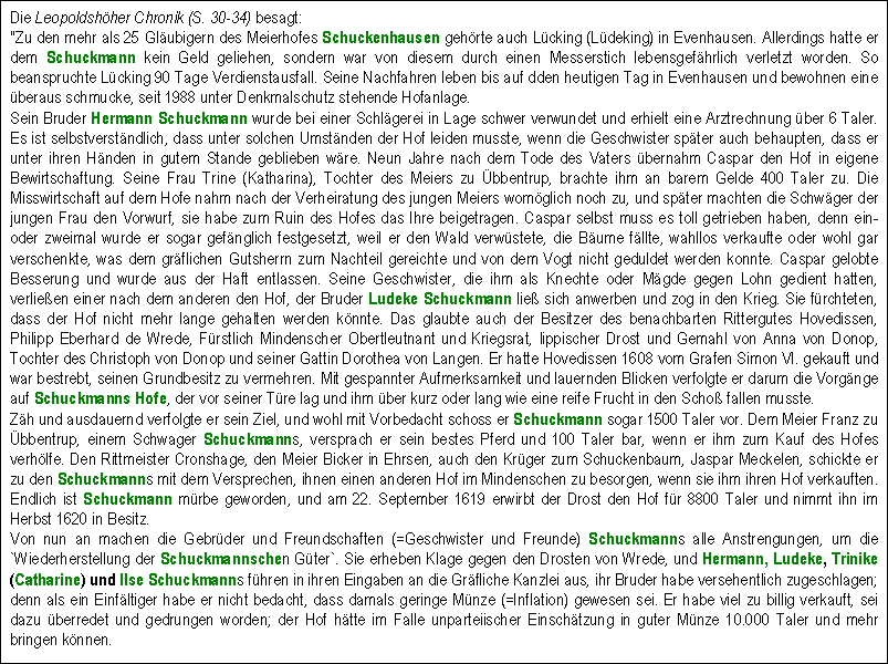 DIE GESCHICHTE VOM SCHUCKENHOF NACH DARSTELLUNG DER ORTSCHRONIK LEOPOLDSHÖHE: