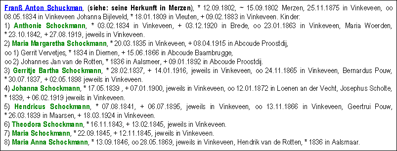 Namensaufkommen Schockmann/Schuckman(n) in Vinkeveen, Niederlande: