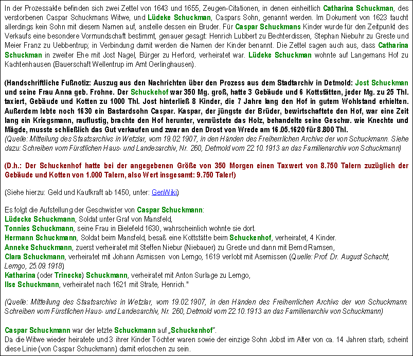 Zur Genealogie von Jost Schuckmann vom Schuckenhof.