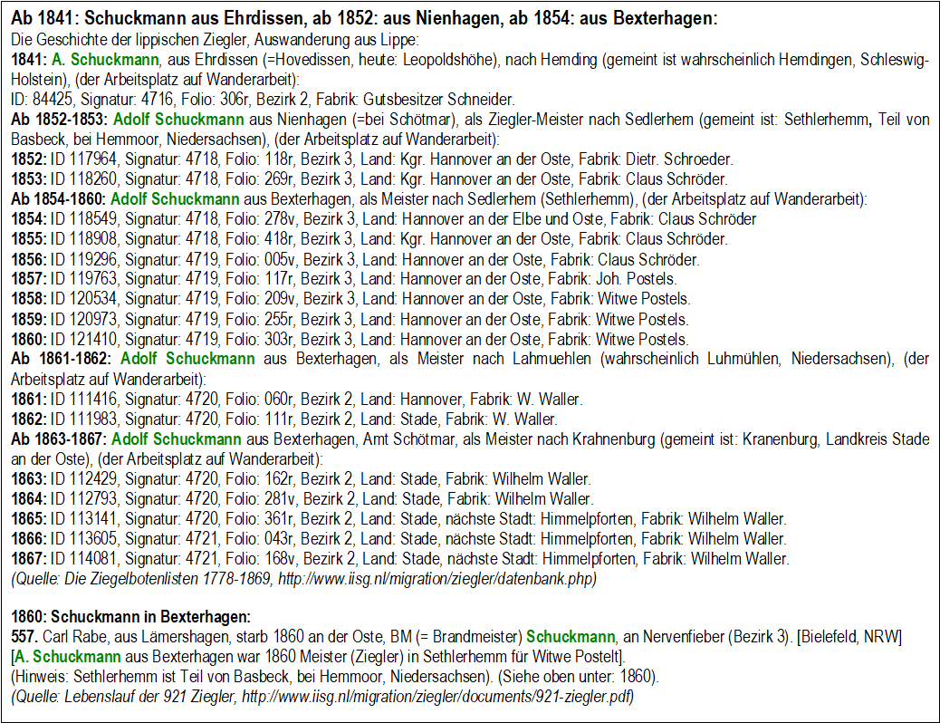 Ab 1841: Namensaufkommen Schuckmann in Leopoldshöhe, ab 1856: Schu(c)kmann in Bexterhagen: