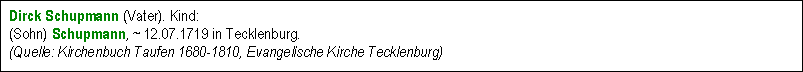 1719: Namensaufkommen Schupmann in Tecklenburg, NRW (s. Ibbenbüren, sw. Wersen/Büren, w. Osnabrück):